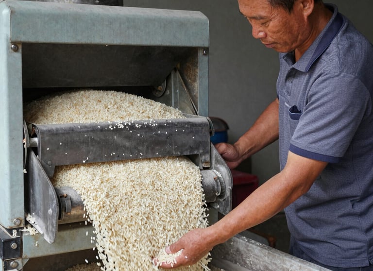 صورة توضح أحد مراحل معالجة الأرز