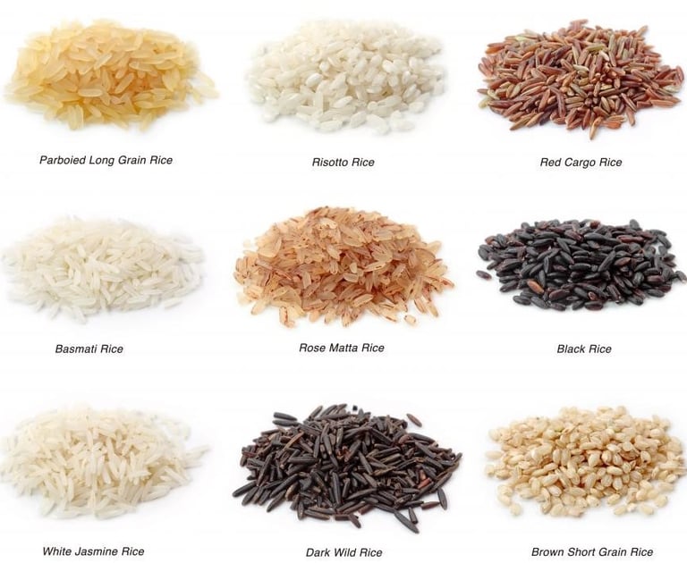 · تنوع الأنواع: هناك مئات الأنواع من الأرز، مثل الأرز طويل الحبة وقصير الحبة والأرز البني والياسمين والبسمتي، ولكل نوع طعمه وقوامه واستخداماته الخاصة في الطهي.